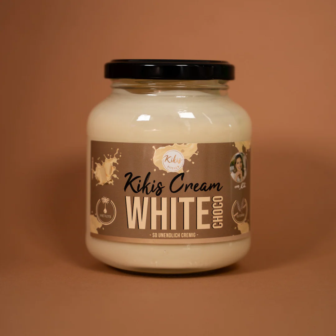 NEU: Probieren Sie die NEUE Kikis Cream WHITE CHOCO - Weiße Schokoladencreme! Eine leckere weiße Schokoladencreme, die süchtig macht. Genießen Sie den reichen Geschmack von weißer Schokolade und verwöhnen Sie Ihren Gaumen mit diesem zartschmelzenden Genuss. Ideal für Schokoladenliebhaber!